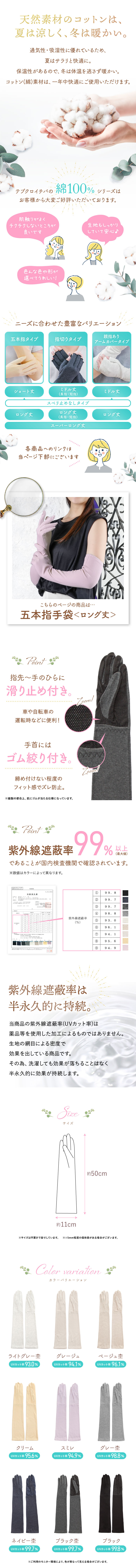 綿100% 最大99%UVカット UVアームカバー 手袋 五本指 ロング 滑り止め 吸汗吸湿 婦人 レディース 紫外線対策 UVカット 日焼け防止 コットン100% 春 夏