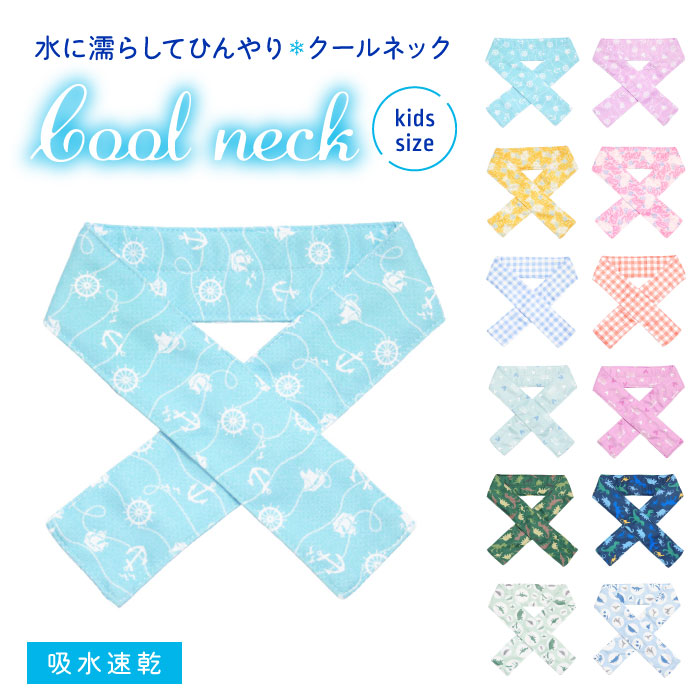 キッズ 水に濡らしてひんやりクールネック クールマフラー 通しマフラー 冷感 吸水速乾 気化熱 熱中対策 UV対策 紫外線対策 アウトドア かわいい 恐竜