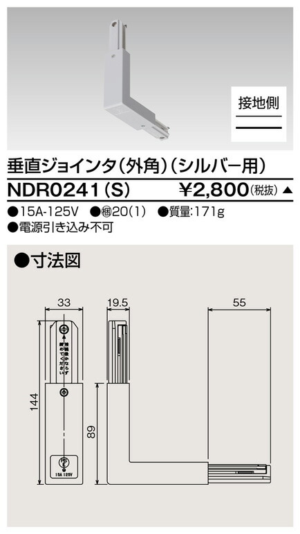 [法人限定] NDR0241(S) 東芝 ※受注品 ライティングレール 6形垂直ジョインタ 外角シルバー [ NDR0241S ]