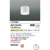 [法人限定] AH54204 コイズミ KOIZUMI 小型シーリング 白熱球100W相当 非調光 温白色 [ AH54204 ]