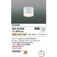 [法人限定] AH54206 コイズミ KOIZUMI 小型シーリング 白熱球60W相当 非調光 電球色 [ AH54206 ]