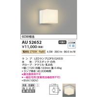 [法人限定] AU52652 コイズミ KOIZUMI 防雨防湿型ブラケット 白熱球60W相当 非調光 電球色 防雨・防湿型 [ AU52652 ]