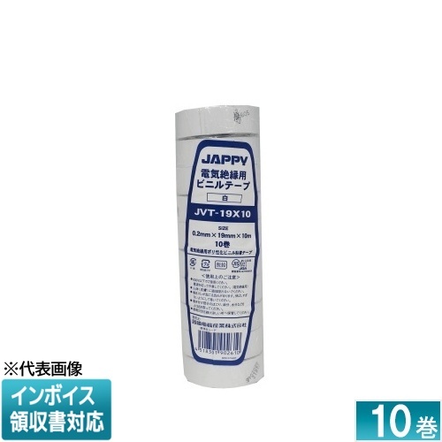 [法人限定] JVT19X10 (白) JAPPY ジャッピー ビニルテープ絶縁処理材 白 10巻セット [ JVT19X10 ] 690-350-10040