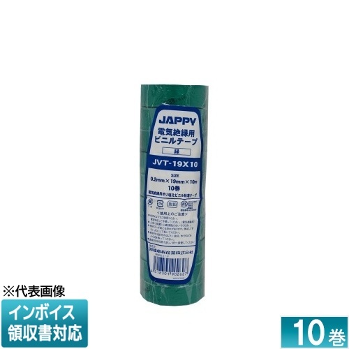 [法人限定] JVT19X10 (緑) JAPPY ジャッピー ビニルテープ絶縁処理材 緑 10巻セット [ JVT19X10 ] 690-350-10050