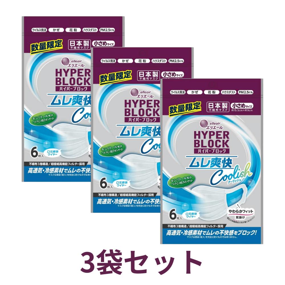 | ■ その他 | マスク装着時のムレを軽減する高機能不織布マスク「ハイパーブロックマスク ムレ爽快」シリーズに キシリトールによって吸気の温度を低下させる機能と、クールミントの香りで爽快感を付加した『ムレ爽快クーリッシュ』が登場。 「ムレ爽快」シリーズの基本性能(超極細高機能フィルター、やわらかフィット耳掛け、高通気素材、口元爽快ワイヤーなど)はそのままで、 新たに肌に触れる内側の不織布にキシリトールを塗布した冷感タイプをご用意。高通気・冷感素材で夏の不快感を軽減します。 さらに、クールミントの香りをつけることでマスクをつけた際に爽快感を感じられるように配慮。包装袋のなかにフレグランスサシェ(クールミントの香り袋)を封入しました。 暑い時期でも感染対策をしながら、快適に装着いただけます。 |