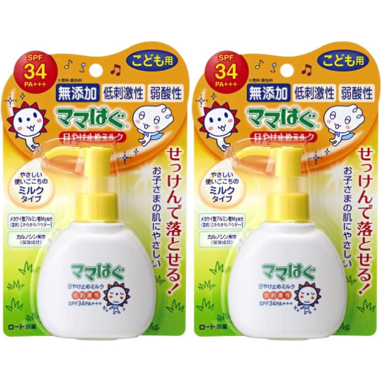 2個セット ロート製薬 ママはぐ 無添加 低刺激性日やけ止めミルク SPF34 PA+++ 100g×2個 広島倉庫