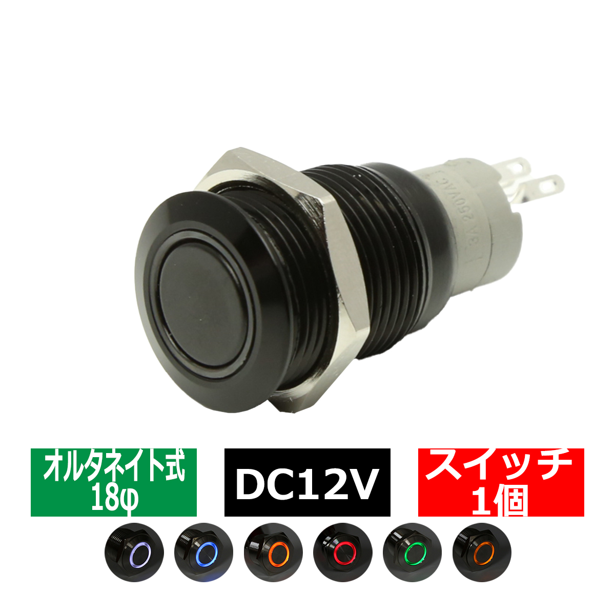 LED リング φ18 汎用 プッシュスイッチ12V用 小型 防滴 ブラックフェイス IZ163