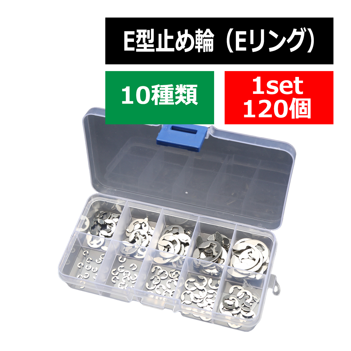 Eリング 10種類 合計120個セット ケース付き E型止め輪 スナップリング 軸などに RCカーなどにも IZ403