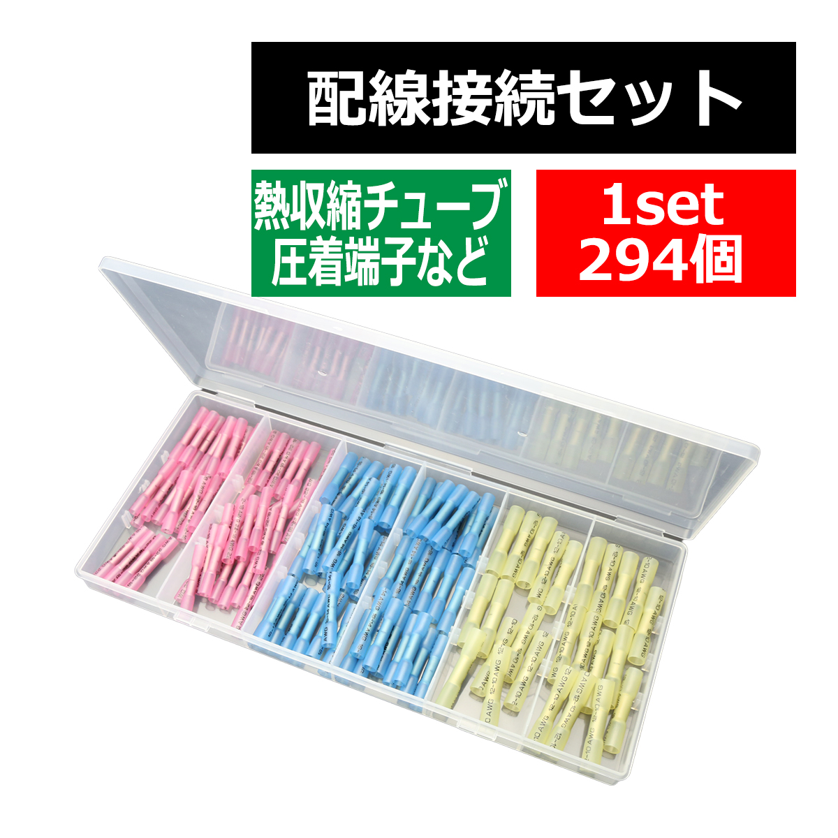 防水型 圧着スリーブ 3種類 合計125個 配線の接続に最適 圧着端子+熱収縮チューブの商品 IZ411