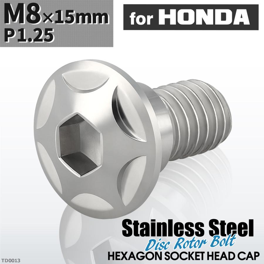 ブレーキディスク ローターボルト M8×15mm P1.25 ホンダ用 スターヘッド 車/バイク シルバーカラー TD0013