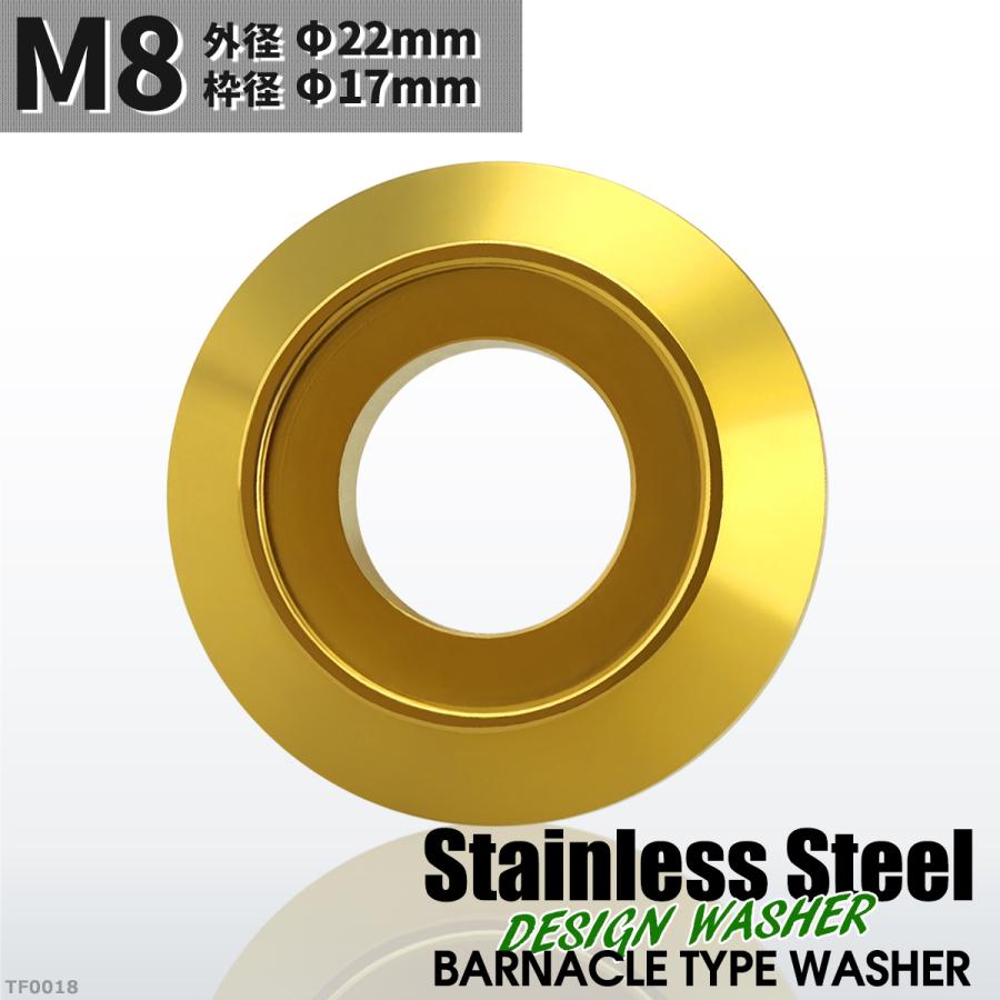 フジツボ型 M8 外径22mm ステンレス デザインワッシャー ボルト座面枠付 ゴールドカラー TF0018