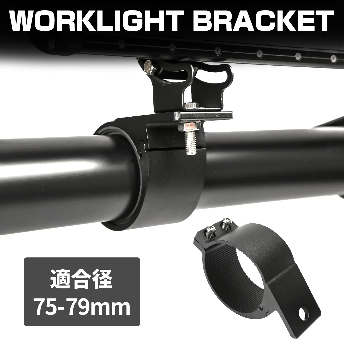 パイプ ステー ライト 取付 作業灯 サーチライト フォグランプ LED 穴あけ不要 ブラケット アルミ製 挟み込み クランプ スタンド 適合パイプ径 75-79mm VZ023