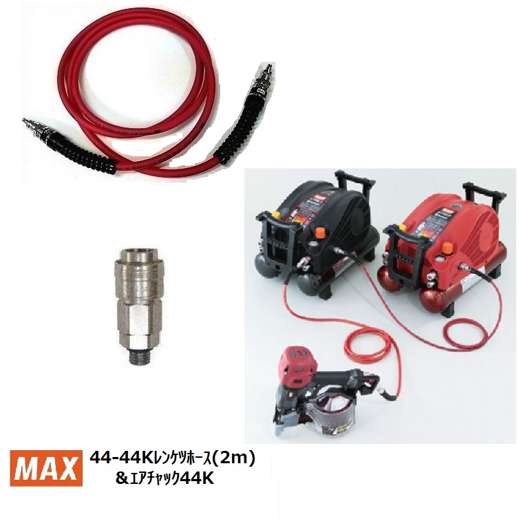マックス 44-44Kレンケツホース (2m) AK14754 +連結エアチャック AK70825 コンプレッサー連結専用セット