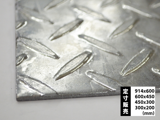 錆びに強くて塗装よりも耐久性のある鉄製溶融亜鉛メッキ縞(しま)鋼板の(914x600〜300x200mm)寸法での希望板厚・サイズ・枚数の販売です。
