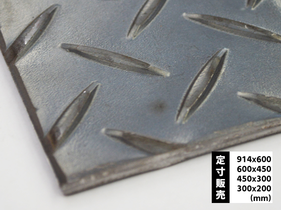 鉄製 縞(シマ)鋼板(黒皮付き・CP400) の(914x600〜300x200mm)定型寸法での希望板厚・サイズ・枚数の販売です。