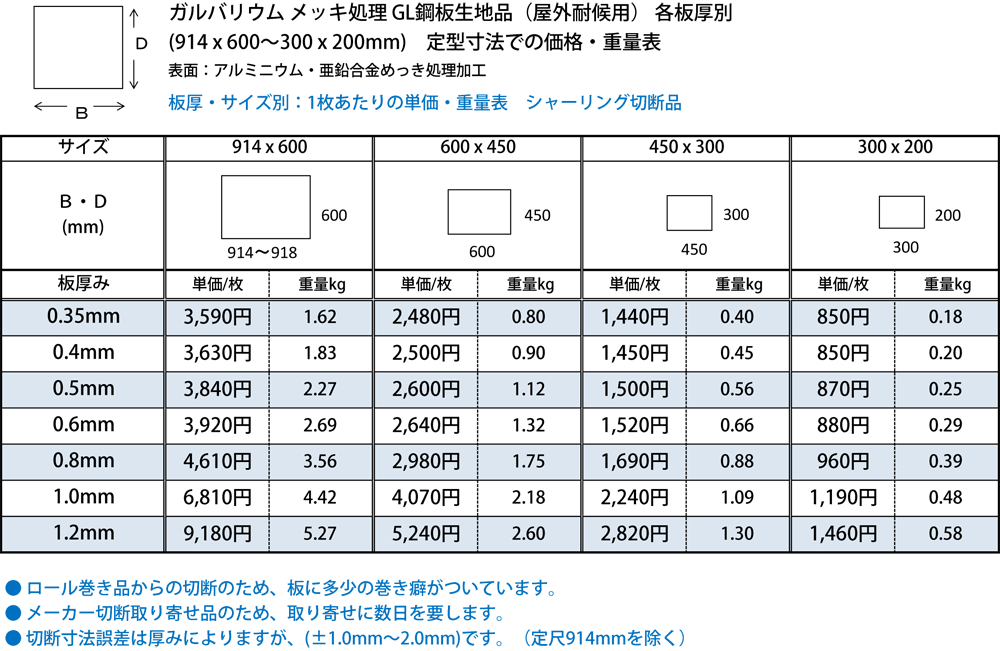耐食性、耐熱性、加工性などに優れたガルバリウム鋼板 (アルミニウム亜鉛合金めっき・生地材) の(914x600〜300x200mm)定寸での希望板厚・ サイズ・希望枚数の販売です。