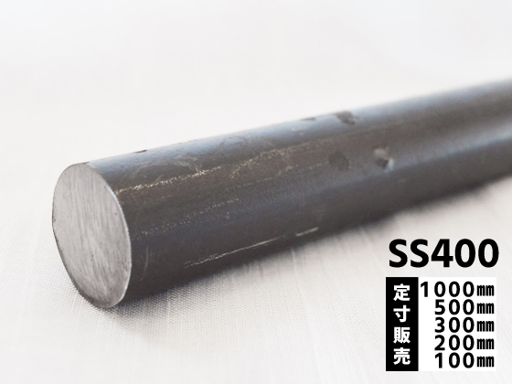 材質は軟鋼材(SS400材)の黒皮丸鋼材です。表面に黒色の酸化鉄を残した状態のままとなります。シャフトや鉄棒など様々な工作に利用される、定番の鉄丸棒です。