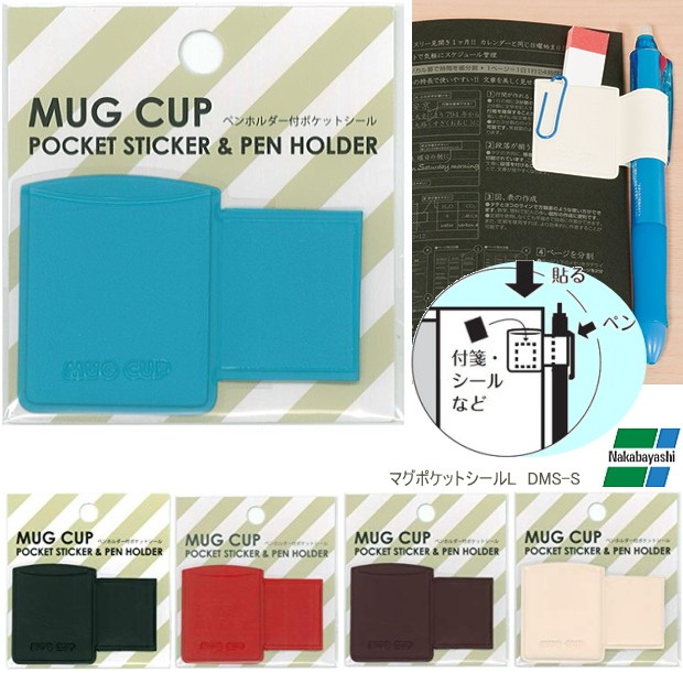 マグカップのかたちをしたペンホルダー付ステッカーです。ミニサイズ。ポケット部分には切手や付箋、シールなどを少し入れておけるので便利です手帳やノートの充実アイテムをお探しの方
