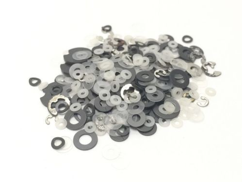 駆動メカ部分分解時に紛失しやすいプラスチック製ワッシャーやEリングのセットとなります。