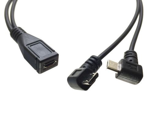 電源供給(充電用)2分岐microUSBケーブル L字コネクタ