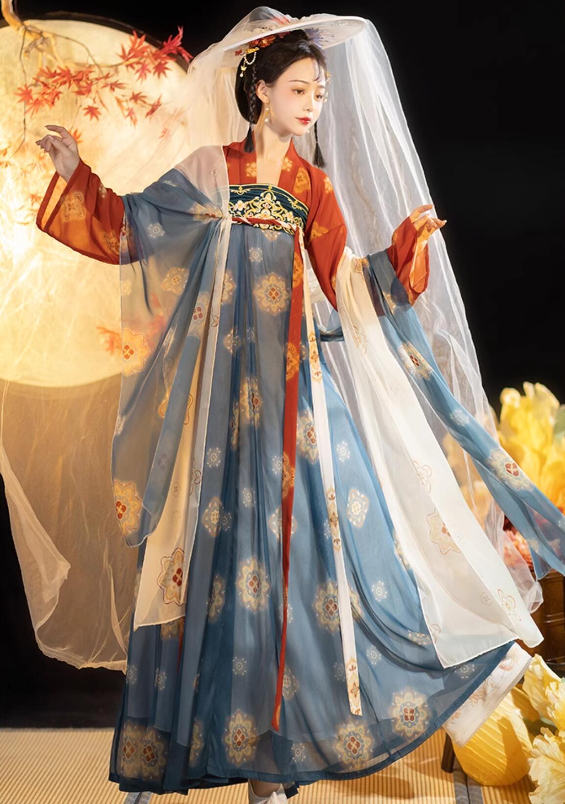 華やか漢服 皇后 貴妃 仮装 変装 全身コスチューム 中華コスプレ衣装 刺繍 エスニック柄 光沢 豪華 唐朝 花魁 衣装 チャイナ服 漢服ドレス 漢唐古代服 中国時代