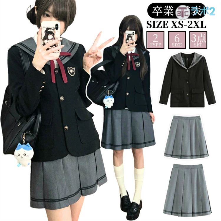 卒業式スーツ セーラー服 マリン 3点セット フォーマルスーツ 卒服 JK 入学式 制服 卒業式 セットアップ かわいい 高校生 プリーツスカート 女の子 結婚式 お受