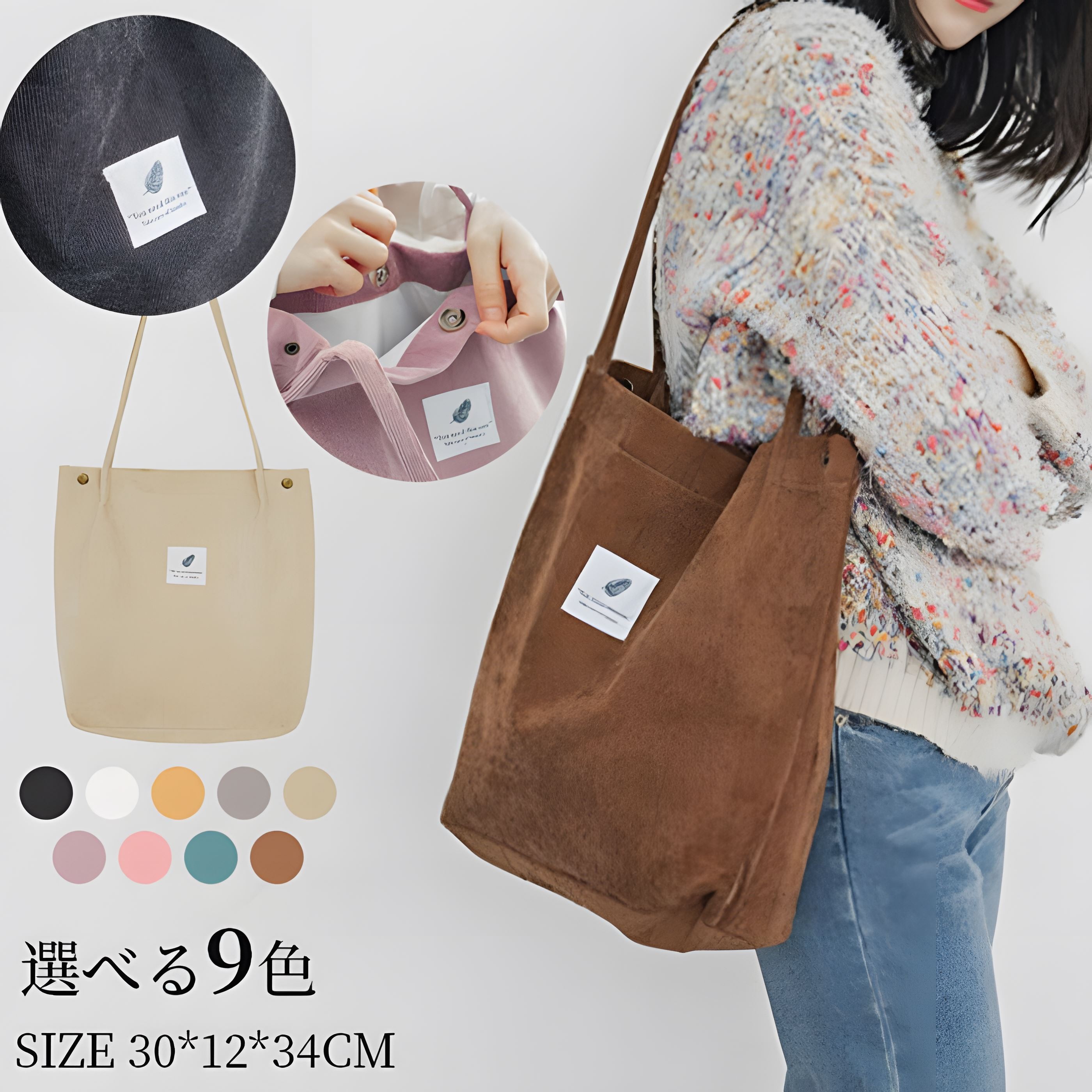 ショルダーバッグ 横型 エコバッグ レディースバッグ カバン A4 トートバッグ 大きめ コーデュロイ バック 肩掛け オシャレ 可愛いデザイン 旅行 通学 通勤 軽量 軽い しっかり大容量 丈夫 コンパクト オールシーズン 年中着用 買い物 キャ