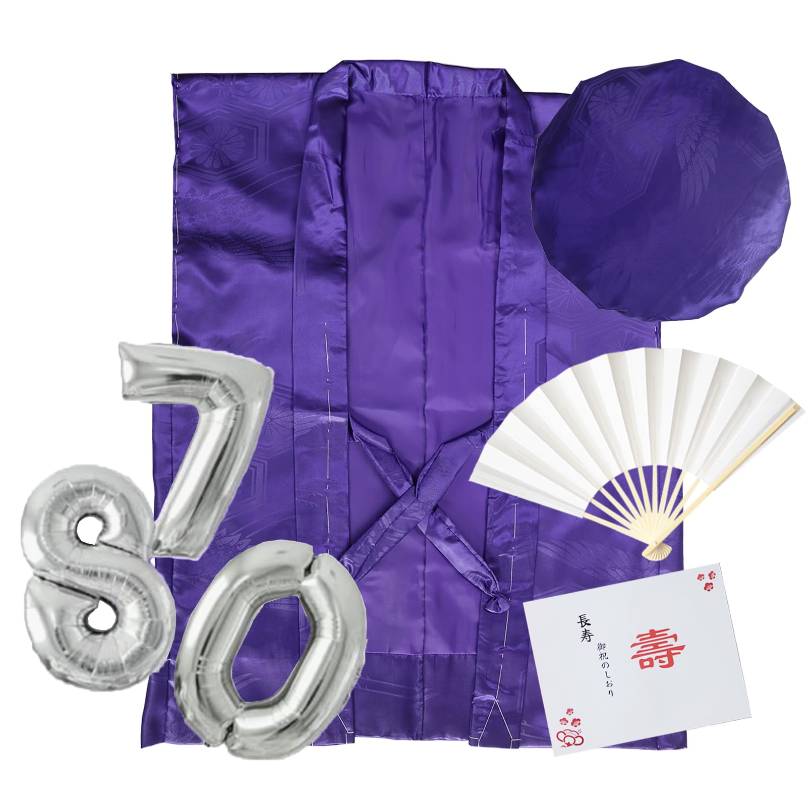TOuWA 鶴亀柄 還暦祝い 古希祝い 長寿祝い ちゃんちゃんこ セット ちゃんちゃんこ 頭巾 祝扇子 栞 化粧箱入り 通年用 男性 女性