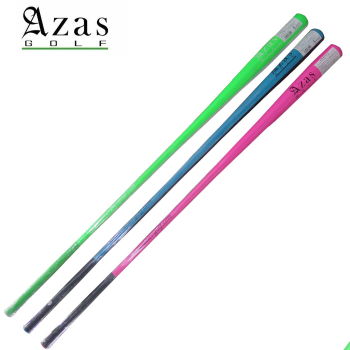 「正しいスイング=オンプレーンスイング」を身につける アザス ゴルフ ドライバット 身体に負担の掛からないスイングでベンホーガンが初めて提唱したとされる「スイングプレーン」という考え方 、当時は「ガラスの面」と表現されていましたが、最近は「オンプレーンスイング」とも呼ばれているスイングを簡単に体感出来、身につけることが出来るAzas「ドライバット」「サプルバット」(意匠登録済)を開発。「オンプレーンスイング」が一番身体に負担が掛からなく、ゴルフが上手くなり=飛ばせるスイングと考えます。「オンプレーンスイング」とはバックスイングからフォロースルーまでのクラブの軌道が一枚の板(ベンホーガンはガラスの面と言っています)の上を通っているように見えるスイングのことを言います。このスイングはボールに一番力(パワー)が伝わり、見た目も美しいスイングです。ただ一般のアマチュアはクラブが軽いため手で簡単に上げてしまう方がとても多いです。クラブを手で上げた時点で一般のアマチュアの方は「プレーン上」から外れてしまいバランスを崩してしまいます。プロゴルファーは練習で野球のバットを利用してトレーニングする方が大変多いです。実は、これがアマチュアの方にも一番良いゴルフの練習になると考えます。軽いもの(ゴルフクラブ)は簡単に手で上げることが出来ますが重いもの(野球のバット)などは簡単に手で上げることは出来ません。もし、バットを無理に手で上げてスイングすると早く振ることは出来ませんし、バランスが崩れて連続素振りなどは絶対に出来ません。(力のある方でも数回は出来たとしても10回20回の連続は出来ないと思います)私たちは重いものを振ることで、手で簡単に上げない・身体全体を使ったバランスのとても良い「正しいスイング=オンプレーンスイング」が身につくと考えます。ただ、重いものといって野球のバットも振らないよりは良いと思いますのが一般のバットはゴルフクラブとは長さもバランスもグリップ部分も違う(野球バットですから当然です)と思います。本当は重くてもゴルフクラブの長さ・バランスに近いバットがあればゴルフの練習(正しいスイングプレーンを身につける)に一番良いと考え、私たちは正しいスイング=オンプレーンスイングを簡単に体感出来、身につけることが出来るAzas「ドライバット」「サプルバット」(意匠登録済)を開発ドライバーと同じ長さ・近いバランスに作られています。男子プロに一番多く愛用して頂いているモデルです。 トレーニングにも調度良い重さのアスリートモデルです。長さ: 45インチ(約114cm) 重さ: 約600g