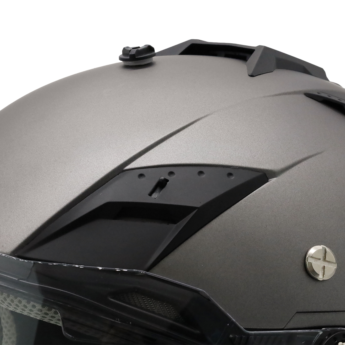 開閉式のインナーサンバイザーを装備したヘルメットです。
