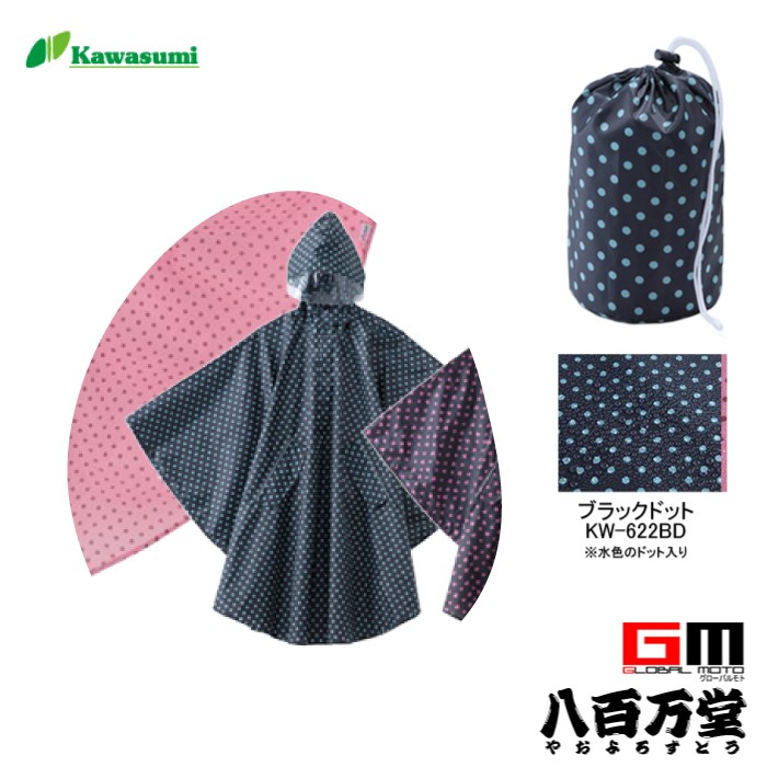 レインポンチョ(収納袋付) ブラックドット(KW-622BD)