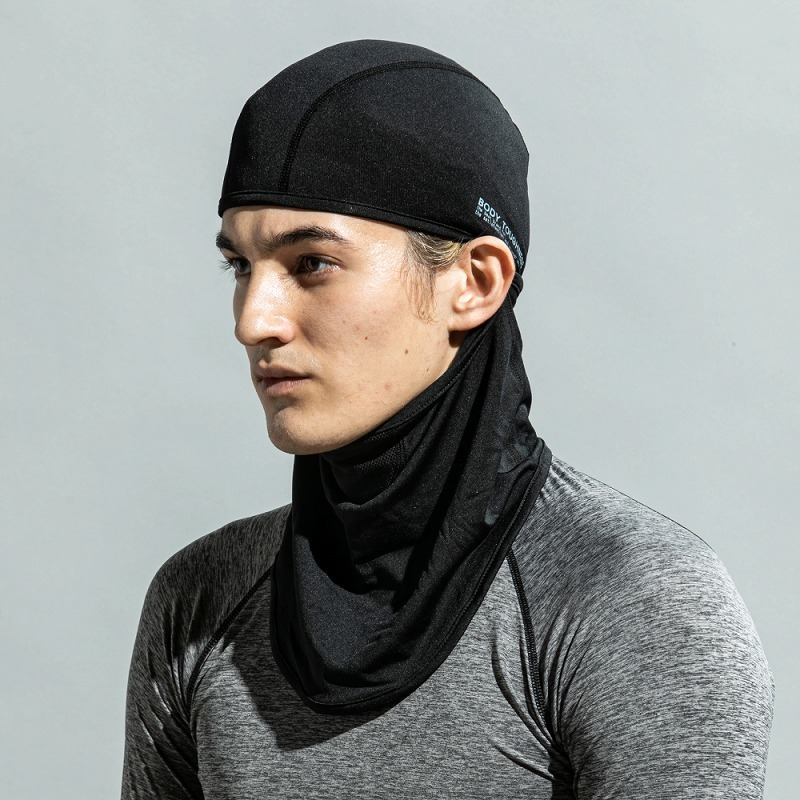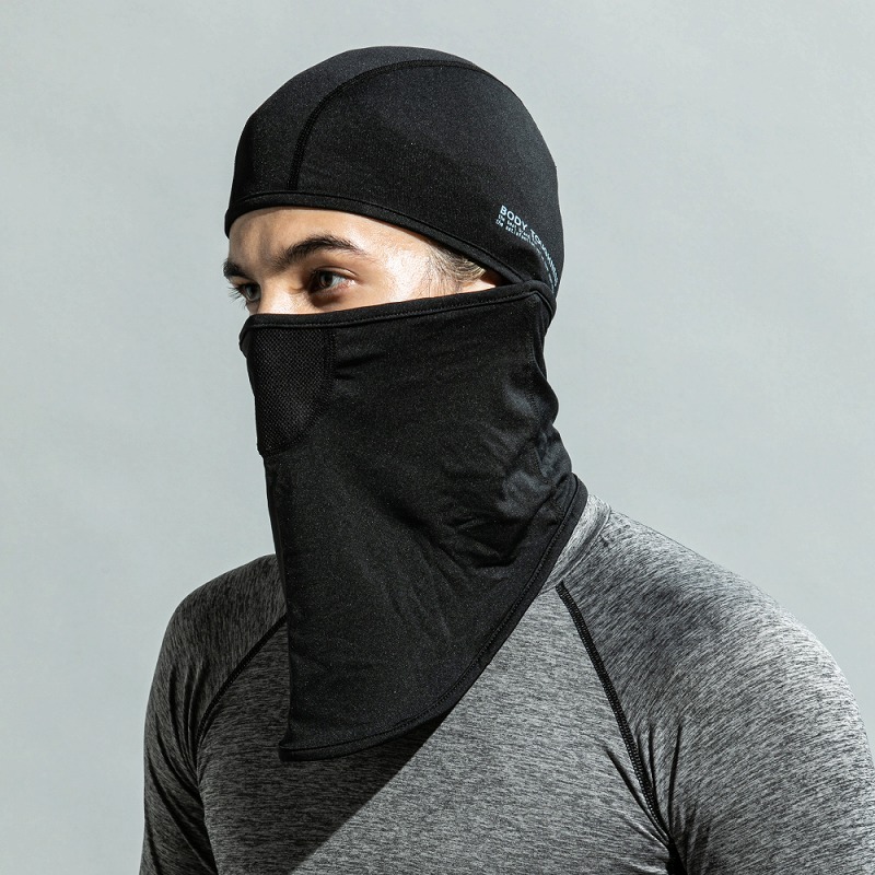 「CROSS COOL?」を使用した伸縮性と速乾性に優れたフルフェイスマスク。