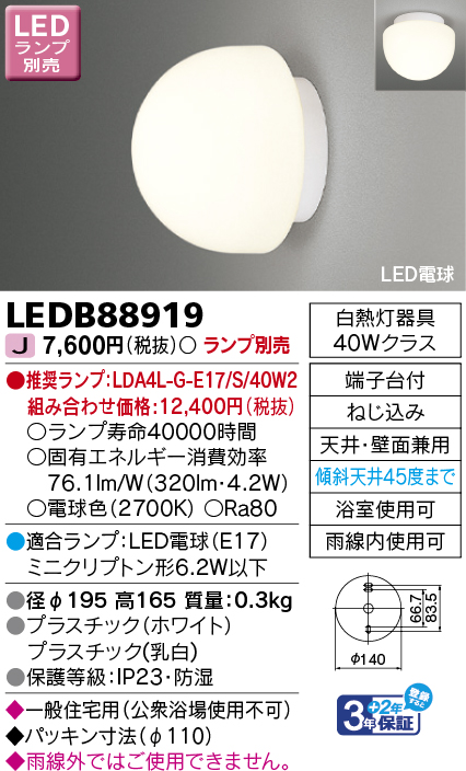 東芝 LEDB88919 LED浴室灯(ランプ別売)(LEDB88919)