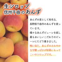 信州のあんずをシロップにあんずの産地、信州千曲のあんずを使用。旬の時期に収穫したあんずの実を贅沢にたっぷり使いました。梅に似たさわやかな甘酸っぱさと独特の芳香がします。爽快感を感じられ、初夏にもってこいのイチオシのシロップです。