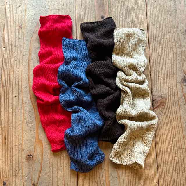 「 つつで温める 」スラブ糸ウォーマー綿スラブの糸はポコポコとした、表情のあるやさしい肌ざわり。ゆったりと編み上げ、透け感があるのも涼しげです。おしゃれな雰囲気で、ナチュラルなお洋服のコーディネートにぴったり。くつろぎの時間にもおすすめのウォーマーです。
