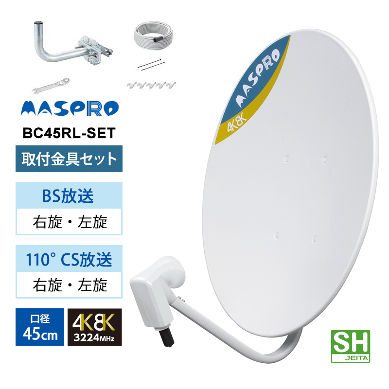 【特価セール】 BS/110度CSアンテナ(45cm) 右左旋円偏波対応 (アンテナ取付金具付) MASPRO (マスプロ) BC45RL-SET★
