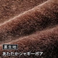 身頃の裏地にはシャギーボアを使用し、袖部分の裏地には中綿入りのキルト地を使用する事で、体は暖かく、袖まわりは動かしやすい工夫をしたシャギーガウン。