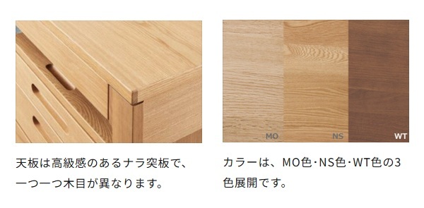 | 主素材 | ナラ材、タモ材、プリント化粧板 |