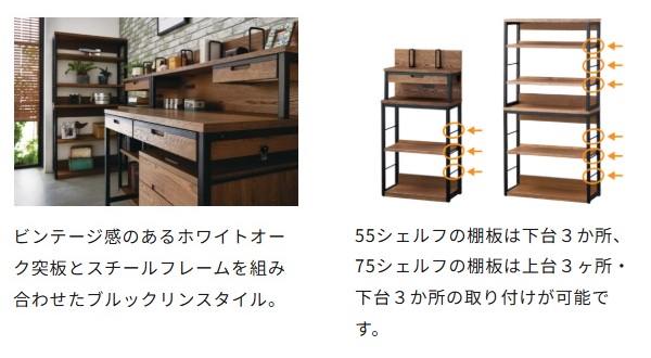 KOIZUMI コイズミ Brost ブロスト 75シェルフ ラック 棚 収納 可動棚 アジャスター付き ビンテージ感のあるホワイトオーク突板 スチールフレーム ブルックリンスタイル 子供から大人まで使える シンプル 子ども部屋 書斎 コイズミファニテック