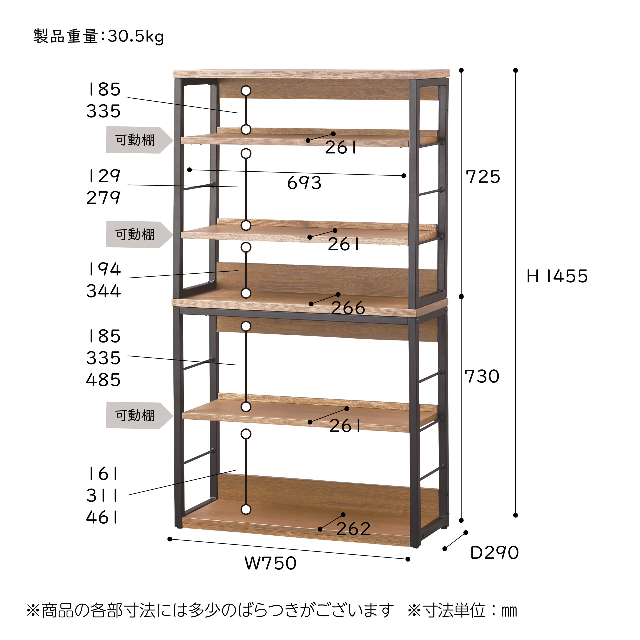 W750×D290×H1,455mm