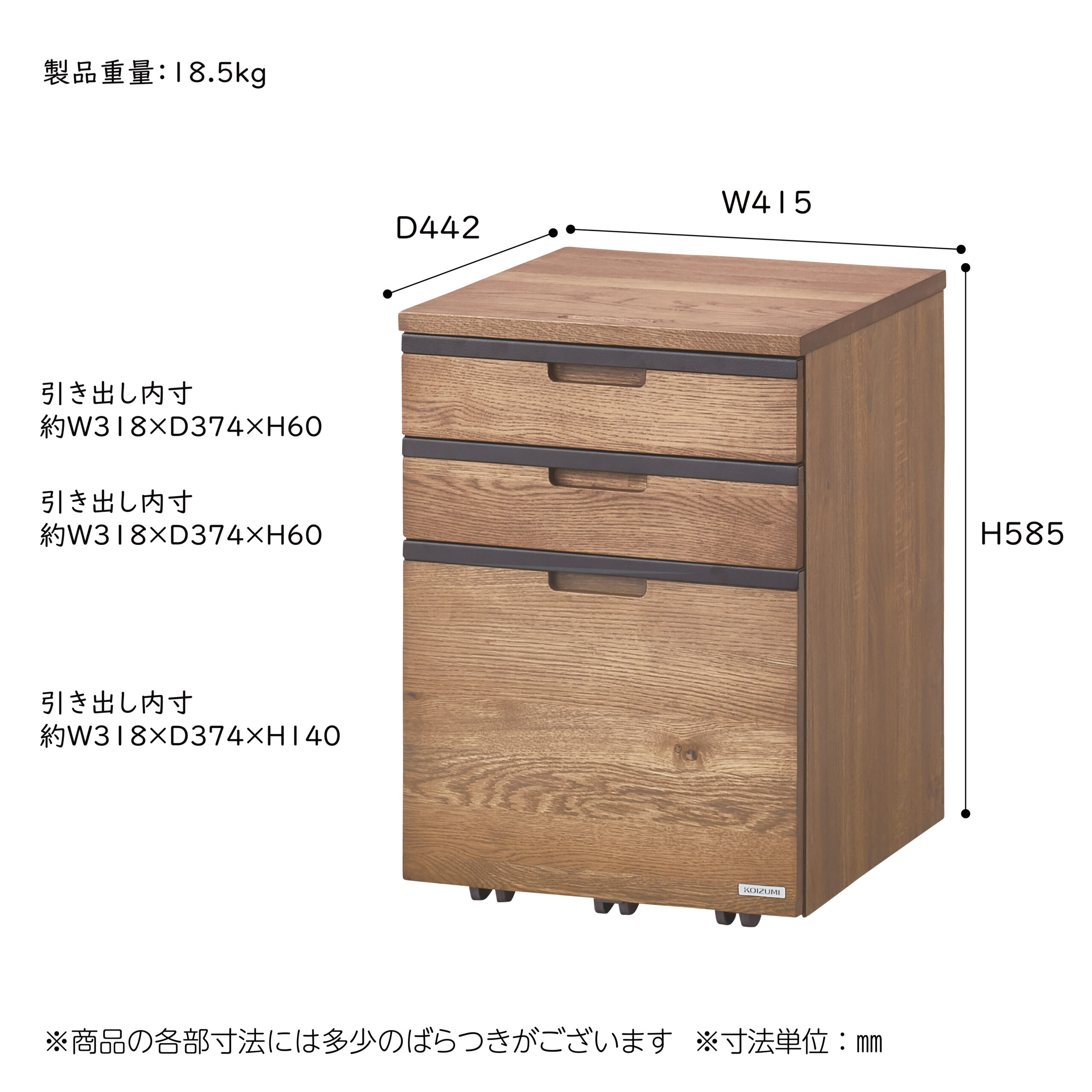 KOIZUMI コイズミ Brost ブロスト ワゴン デスク 学習デスク 学習机 勉強机 引き出し フルオープンレール付き ペントレー付き キャスター付き ビンテージ感のあるホワイトオーク突板 ブルックリンスタイル 子供から大人まで使える シンプル 子ども部屋 書斎 コイズミファニテック