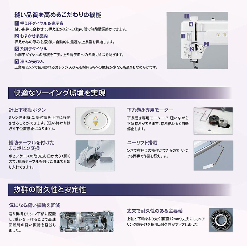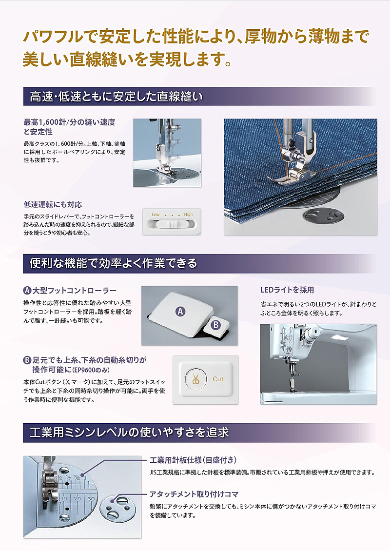 ■最高ぬい速度:800〜1600針/分(スライドレバーにて調整)