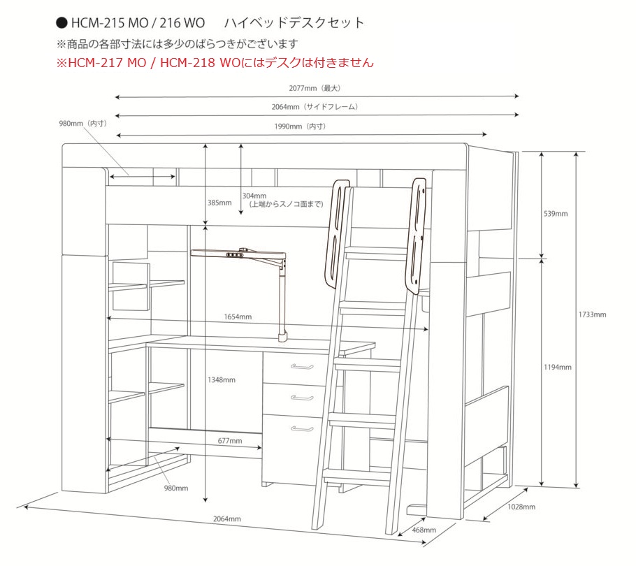 コイズミ Built COMPO ハイベッド HCM-217 MO色 HCM-218 WO色 システムベッド ロフトベッド シングルベッド KOIZUMI ビルトコンポ お客様組立品