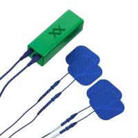 RUCOE GOLFのセッティングは、かんたんスピーディ。わずかな4ステップで使用が可能です。ここでは3つのモードそれぞれの効果的な使い方をご紹介します。![]() ■ PRACモード 練習前や自宅で。ゴルフに必要な筋肉にアプローチして理想の動きを目指しましょう。 1.タメのあるトップをつくるために (1) ![]() パッド貼付位置:腹直筋(肋骨に沿って貼付)・腹斜筋群 Point !:ゴルフの捻転動作は、回旋と側屈(サイドベンド)の連動が重要です。 体幹が回らずにトップが浅い場合は、体幹を刺激しながらストレッチをしましょう。 目安:1セット10回×2〜3セット 2.タメのあるトップをつくるために (2) ![]() パッド貼付位置:菱形筋〜胸椎 Point !:上半身が回らずにトップが浅い場合は、肩甲骨周辺の筋肉を刺激します。 上半身の捻転を意識したエクササイズを組み合わせましょう。 目安:1セット10回×2〜3セット 3.飛距離をアップさせるために (1) ![]() パッド貼付位置:広背筋・腰方形筋 Point !:ストレッチしながら広背筋を刺激することで、力強いバックスイングとダウンスイングを引き出し、手打ちを防ぎましょう。 目安:5〜10分程度 4.飛距離をアップさせるために (2) ![]() パッド貼付位置:臀筋群 Point !:お尻の筋肉が使えると骨盤が安定し、スイングプレーンも維持できます。 お尻の筋肉を意識しながら、片足スイングをしましょう。 目安:1セット20回×2〜3セット 5.パターを安定させるために ![]() パッド貼付位置:多裂筋 Point !:パターなどの細かい動作では数ミリのズレが命取りになるため、インナーマッスルを刺激してパッティングストロークの安定化を図ります。 手打ちにならないよう意識して、スイング動作をしながら使用します。 目安:5〜10分程度 6.安定したアドレスポジションのために ![]() パッド貼付位置:ハムストリングス・膝裏 Point !:アドレスの前傾姿勢時に伸びるべき太もも裏の筋肉を刺激します。 股関節からの屈曲を意識して使うと効果的です。 目安:1セット10回×2〜3セット 7.スライスを防止するために ![]() パッド貼付位置:腹斜筋群・臀筋群 Point !:スライスの原因のひとつである身体の横ブレを防止するため、側面の筋肉の安定化をサポートします。 目安:5〜10分程度 ■ SWITCHモード ラウンド前の使用が効果的。眠っている身体を目醒めさせましょう。 1.眠った状態の身体をアクティブにするために ![]() パッド貼付位置:手首 Point !:右手首を挟むように貼ります。左打ちの方は左手首に貼ってください。 目安:3分程度 ■ RESTモード ラウンド後の自由なタイミングで、筋肉に休息を。日常的なコンディショニングにも。 1.肘と手首のケア ![]() パッド貼付位置:肘・手首(親指側または小指側) Point !:ケアをしたい側の肘と手首に貼ります。出力は心地よいと感じるレベルで使用します。 目安:10〜20分程度 2.負担のかかった膝のケア ![]() パッド貼付位置:大腿四頭筋・膝裏 Point !:ケアをしたい側の脚の膝上(前面)と膝裏に貼ります。出力は心地よいと感じるレベルで使用してください。 目安:10〜20分程度 3.ラウンド後の脚のクールダウン ![]() パッド貼付位置:前脛骨筋・下腿三頭筋 Point !:前面または背面のどちらか一方、気になる側だけを刺激しても構いません。出力は心地よいと感じるレベルで使用してください。 目安:10〜20分程度 4.ラウンド後の腰のリフレッシュ ![]() パッド貼付位置:背中・腰周辺 Point !:左右同じ部位に貼り、同時に使用します。出力は心地よいと感じるレベルで使用してください。 目安:10〜20分程度 | ||||||||||||||||||||