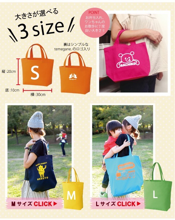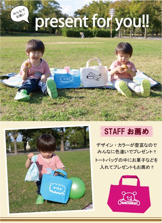 お手軽にお名前入りトートが作れちゃいます!!ロンパースやTシャツとセットで出産祝い・お誕生日のプレゼント、マザーズバッグにもお勧めです♪