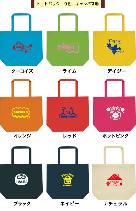 お手軽にお名前入りトートが作れちゃいます!!ロンパースやTシャツとセットで出産祝い・お誕生日のプレゼント、マザーズバッグにもお勧めです♪