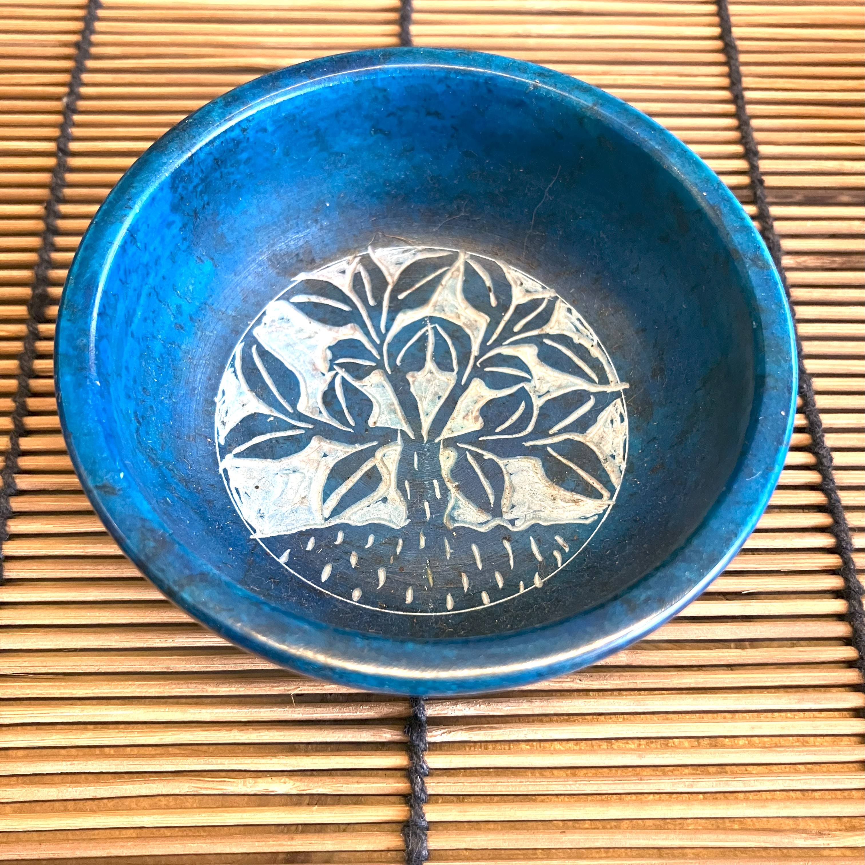円形 小物入れ トレイ ソープストーン 丸形 ラウンドトレイ ターコイズブルー ミニトレイ インド インテリア雑貨 アジアン雑貨