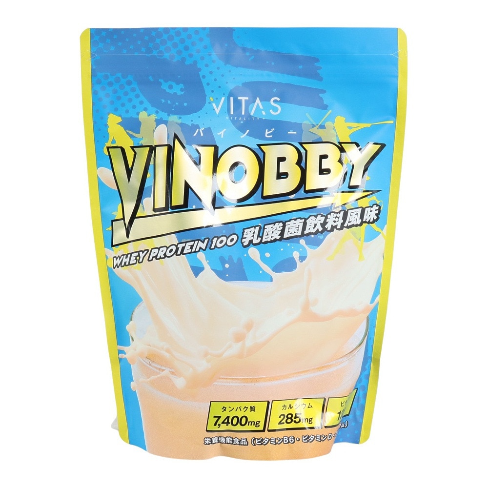 豆由来)、甘味料(ステビア)、カラメル色素、リン酸Ca、香料、シクロデキストリン、パントテン酸Ca、V.B6、V.C、V.B1、V.B2、ナイアシン、V.A、V.E、葉酸、V.D、V.B12●栄養成分表示:1食15gあたりエネルギー 56kcal/タンパク質 7400mg/脂質 0.3g/炭水化物 6.1g/食塩相当量 0.13g/ビタミンA1 112〜278μg/ビタミンB1 0.29mg/ビタミンB2 0.46mg/ビタミンB6 0.5mg/ビタミンB12 0.8〜3.0μg/ビタミンC 0.3mg/ビタミンD 1.65〜3.6μg/ビタミンE 0.2mg/ビタミンK 0.3〜0.8μg/葉酸 3〜17μg/ナイアシン 0.4mg/パントテン酸 1.6mg/カルシウム 285mg/亜鉛 3.2mg●栄養成分表示:(1食15gあたり)エネルギー 56kcal/たんぱく質 7.4g/脂質 0.3g/炭水化物 6.1g/糖質 5.8g/食物繊維 0.3g/食塩相当量 0.13g/ビタミンA 112〜278ug/ビタミンB1 0.29mg/ビタミンB2 0.46mg/ビタミンB6 0.5mg/ビタミンB12 0.3〜0.8ug/ビタミンC 0.4mg/ビタミンD 1.65〜3.6ug/ビタミンE 0.2mg/ビタミンK0.3〜0.8ug/葉酸 3〜17ug/ナイアシン 0.4mg/パントテン酸 1.6mg/カルシウム 285mg/亜鉛 3.2mg●容量:450g/アルミパウチ●名称:乳清たんぱく加工食品(プロテインパウダー)●メーカー名:株式会社スリーピース●日本製●使用回数:約30回分●1食あたりのタンパク質含有量(g):7.4●食事:朝食、間食●「VINOBBY」は1杯あたりタンパク質7.400mg、カルシウム285mg、ビタミン12種類を配合!●タイミング:運動前後・就寝前●成長期に欠かせない栄養素【返品・注意事項について】※食料品につき、ご注文後の返品・交換はお受けできません。【商品の購入にあたっての注意事項】※一部商品において弊社カラー表記がメーカーカラー表記と異なる場合がございます。※ブラウザやお使いのモニター環境により、掲載画像と実際の商品の色味が若干異なる場合があります。※掲載の価格・製品のパッケージ・デザイン・仕様について、予告なく変更することがあります。あらかじめご了承ください。