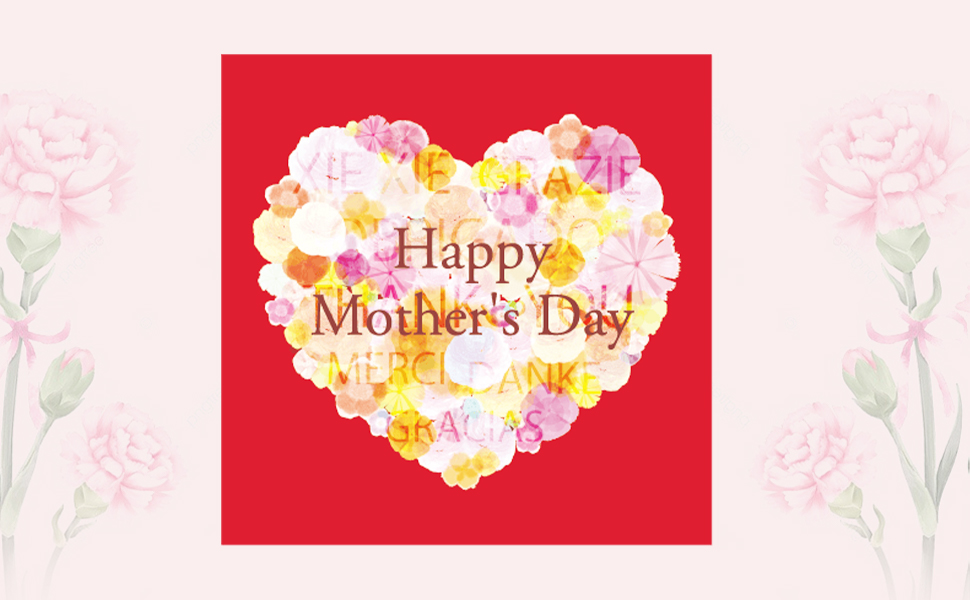 様々な色の花で形作られたハートの中には「Happy Mother’s Day」のメッセージに加え、
