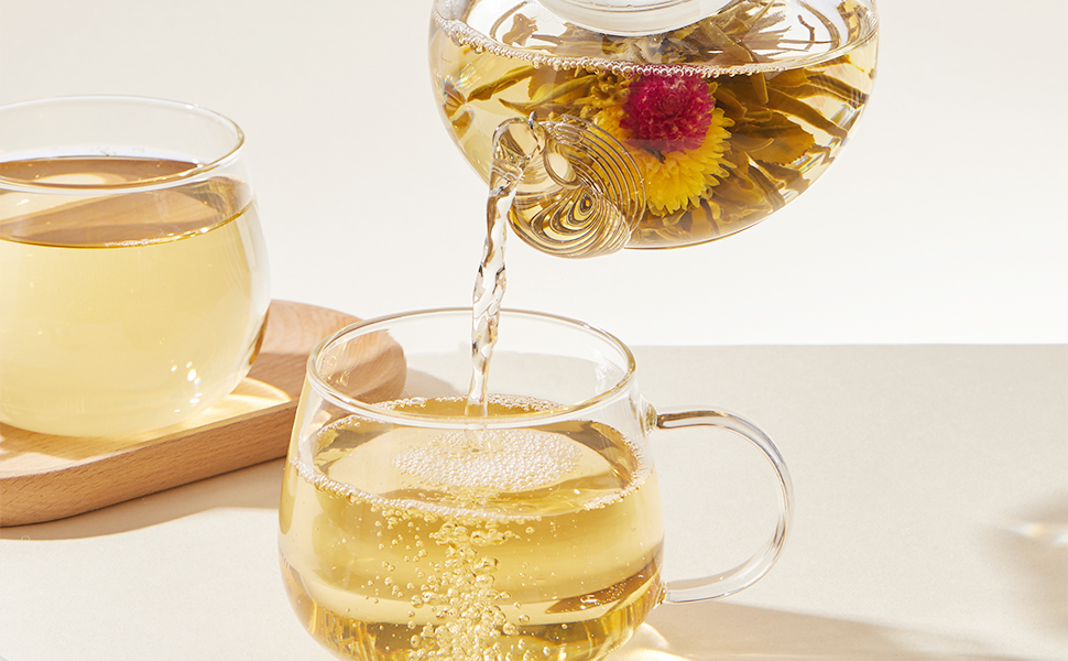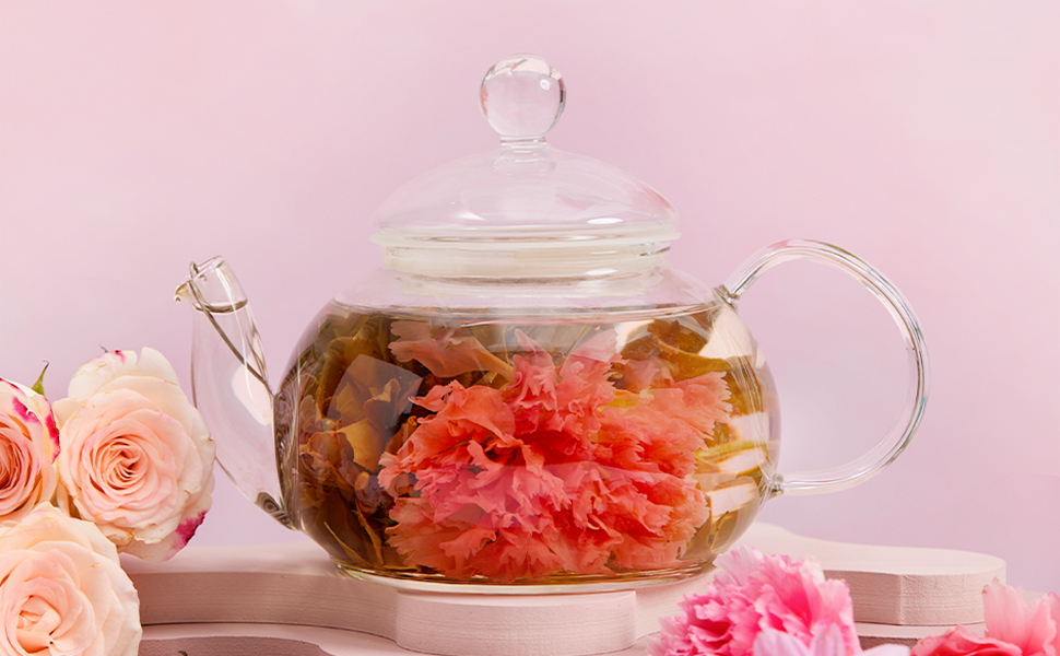 【主な特徴】1. 見て楽しめる:透明なガラスティーポットで淹れると、花が咲く様子を楽しめます